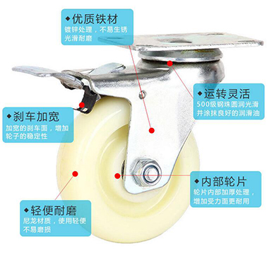 1、 工業腳輪:即工業用輪子,分工業橡膠輪、工業PP輪、工業PU輪、工業TPR輪, 工業...